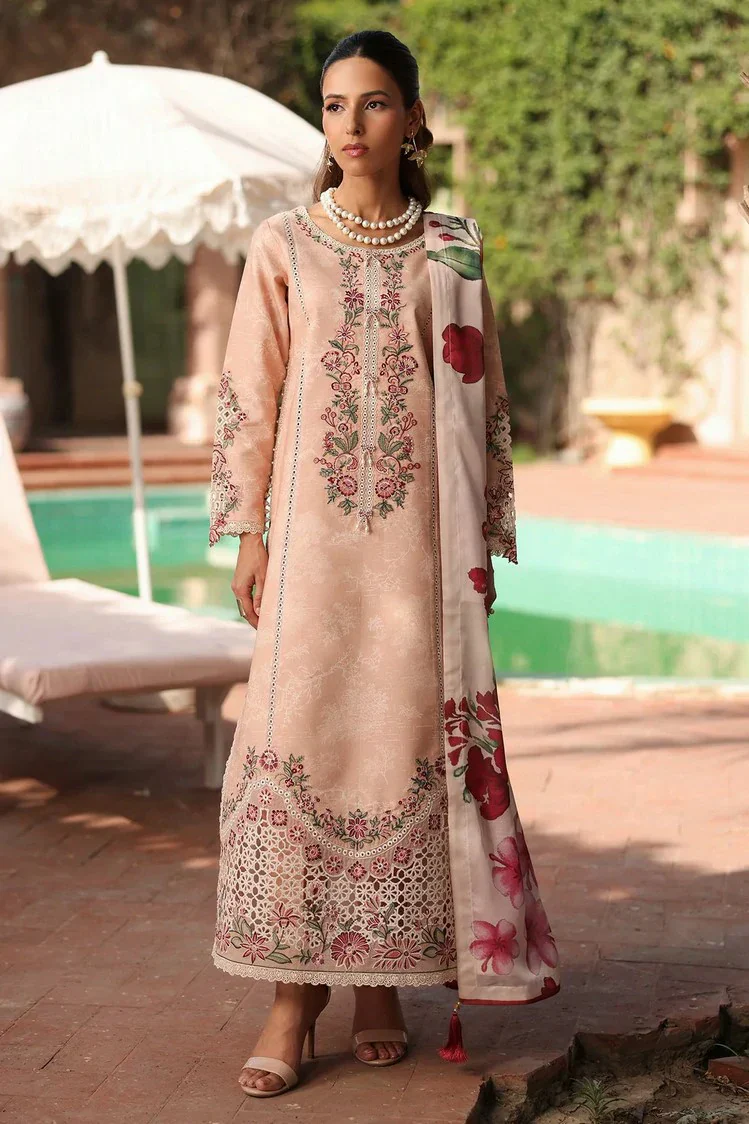 Elegant Beige Printed Lawn Suit with Pink Ombré Chiffon Dupatta