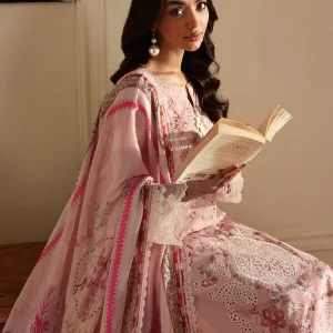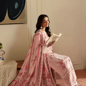 Elegant Beige Printed Lawn Suit with Pink Ombré Chiffon Dupatta