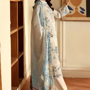 Tranquil Aqua Marine Printed Lawn Suit with Embroidered Details and Chiffon Dupatta