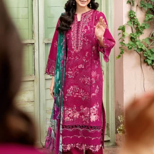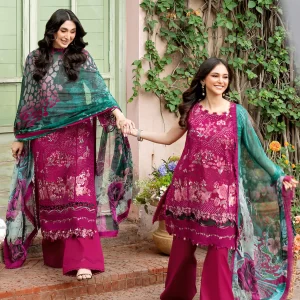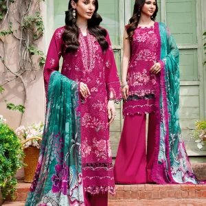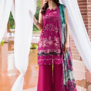 Luxurious Mulberry Red Embroidered Lawn Suit with Chiffon Dupatta