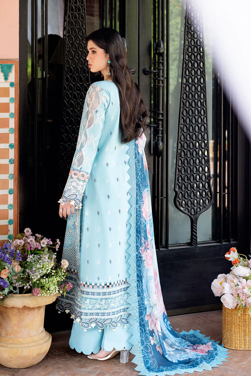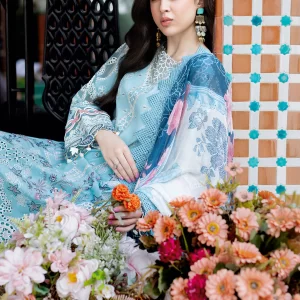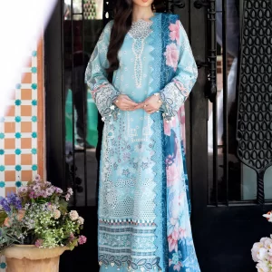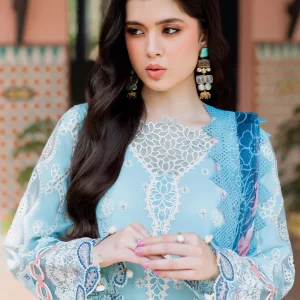 Serene Cerulean Blue Embroidered Lawn Suit with Chiffon Dupatta