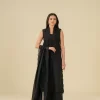 Striking Black Embroidered Cotton Ensemble with Silk Dupatta