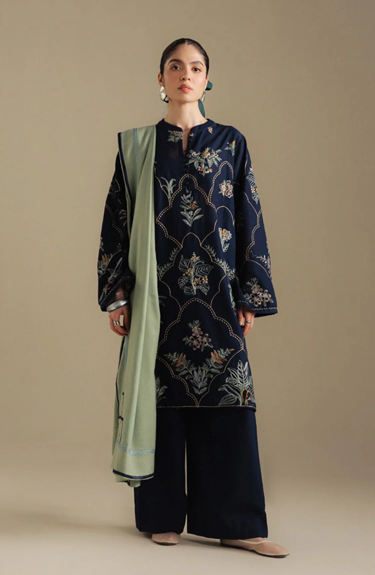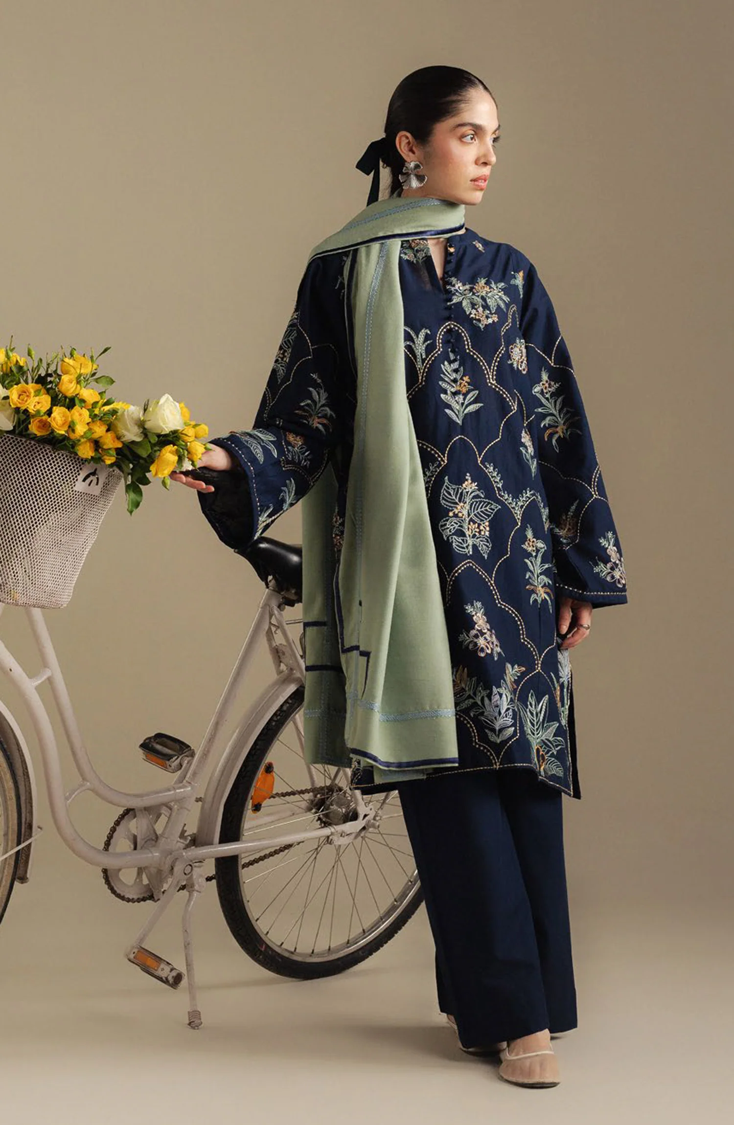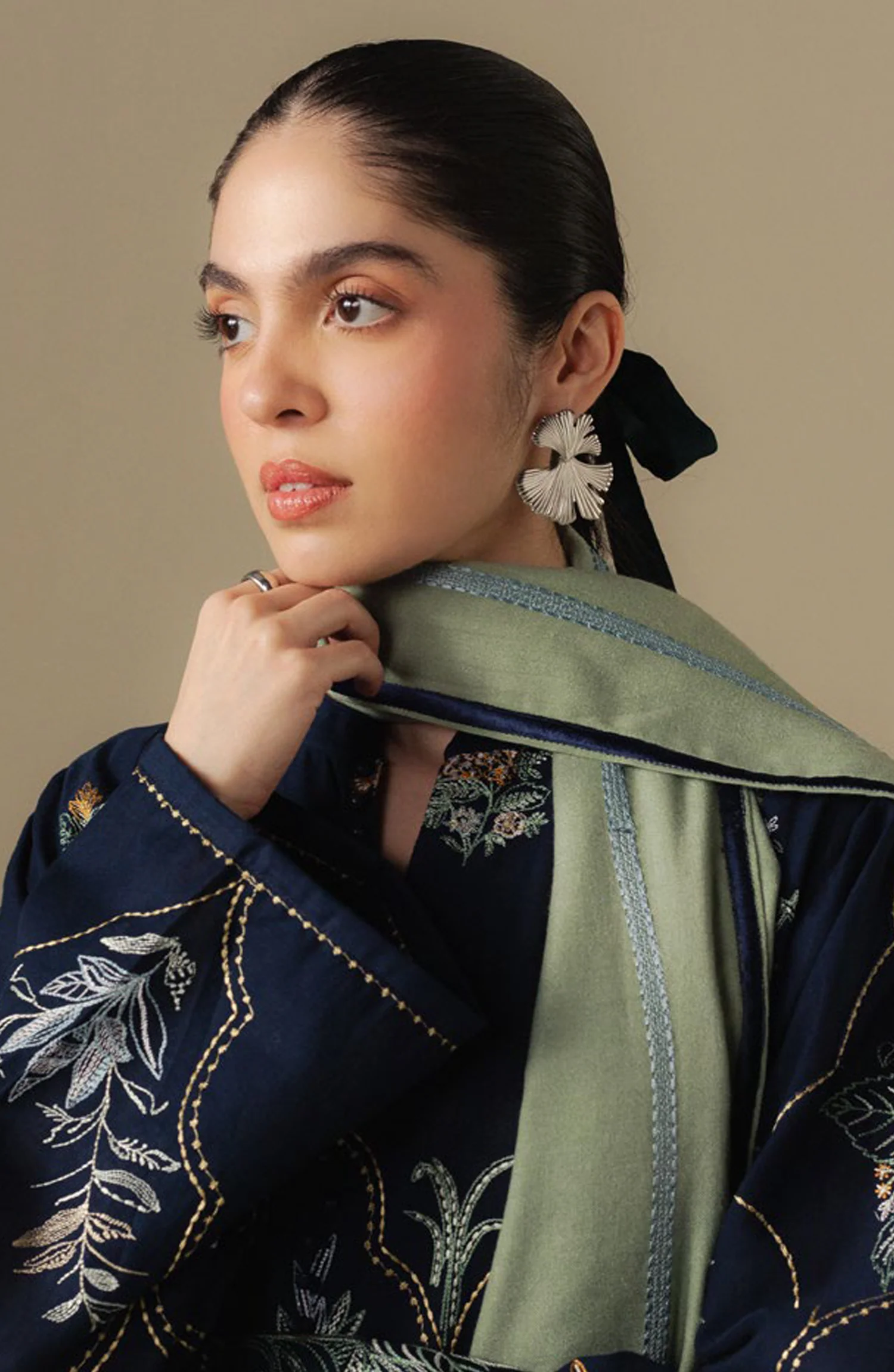 Coco by Zara Shahjahan Unstitched Winter Khaddar Embroidered Suits with Shawl – Amber-1B