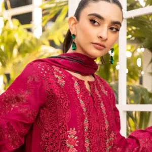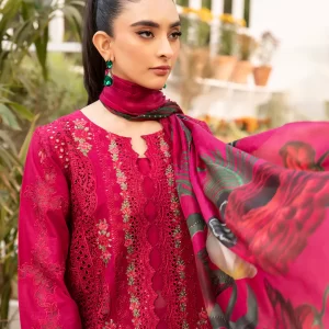 Elaf Embroidered Lawn Unstitched 3 Piece Suit – ELM-10 Gulnar – Red – Summer Collection