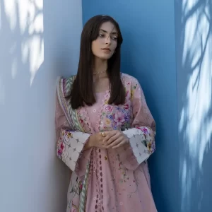 Delicate Light Pink Embroidered Cotton Suit with Floral Silk Dupatta