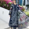 Elegant Navy Blue Embroidered Lawn Suit with Printed Chiffon Dupatta