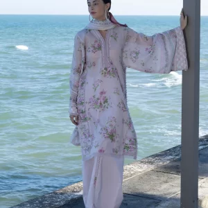 Elegant Beige Printed Lawn Suit with Pink Ombré Chiffon Dupatta