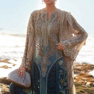 Infuse your wardrobe with charm and contrast through this Elegant Coffee & Teal 3-Piece Unstitched Embroidered Lawn Suit, designed for women who love standout colors and refined details. From its stunning embroidery to its sparkling dupatta, this suit is perfect for festive lunches, gatherings, or semi-formal events.