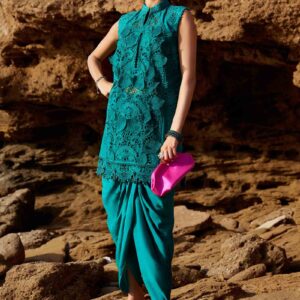With its serene sea green tone and fine embellishments, this suit radiates timeless charm, making it an exceptional choice for refined seasonal wear.