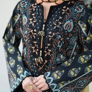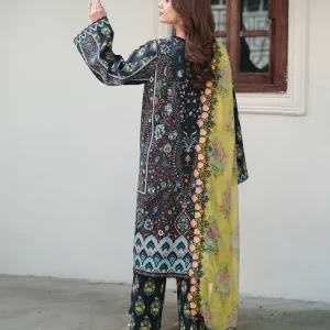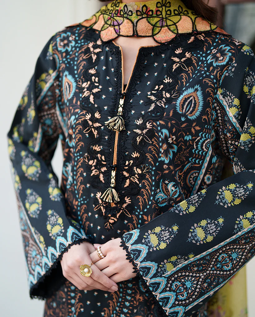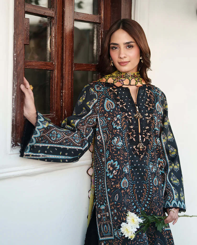Sophisticated Black Embroidered Lawn Suit with Digital Prints and Chiffon Dupatta