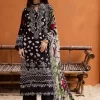 Elegant Navy Blue Embroidered Lawn Suit with Printed Chiffon Dupatta