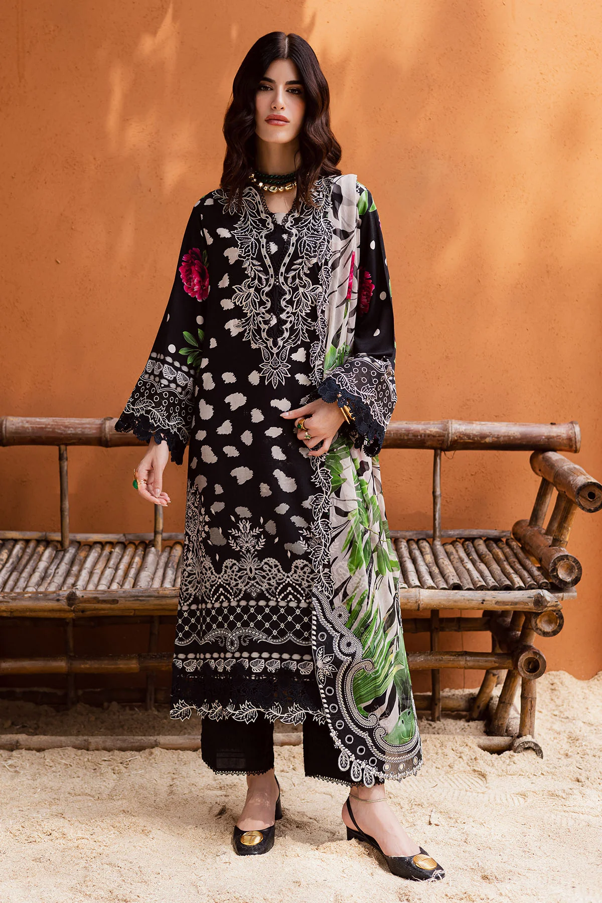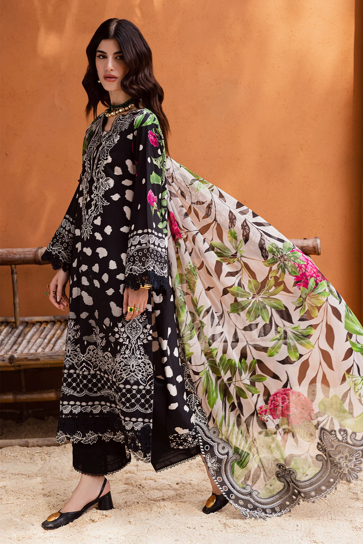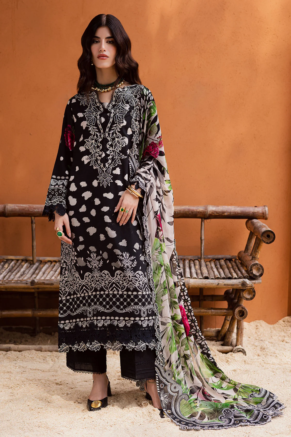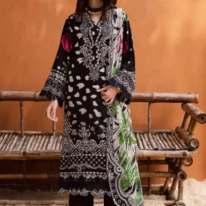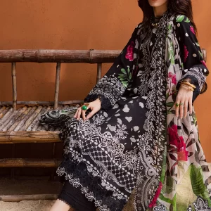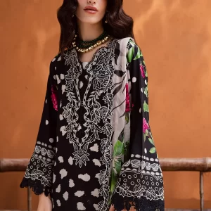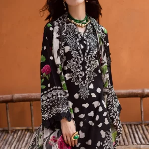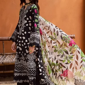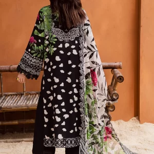 Sophisticated Black Embroidered Lawn Suit with Digital Prints and Chiffon Dupatta