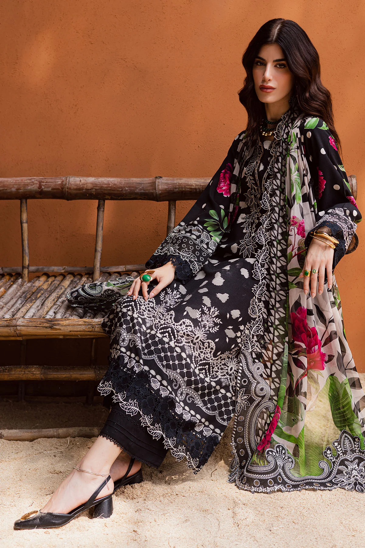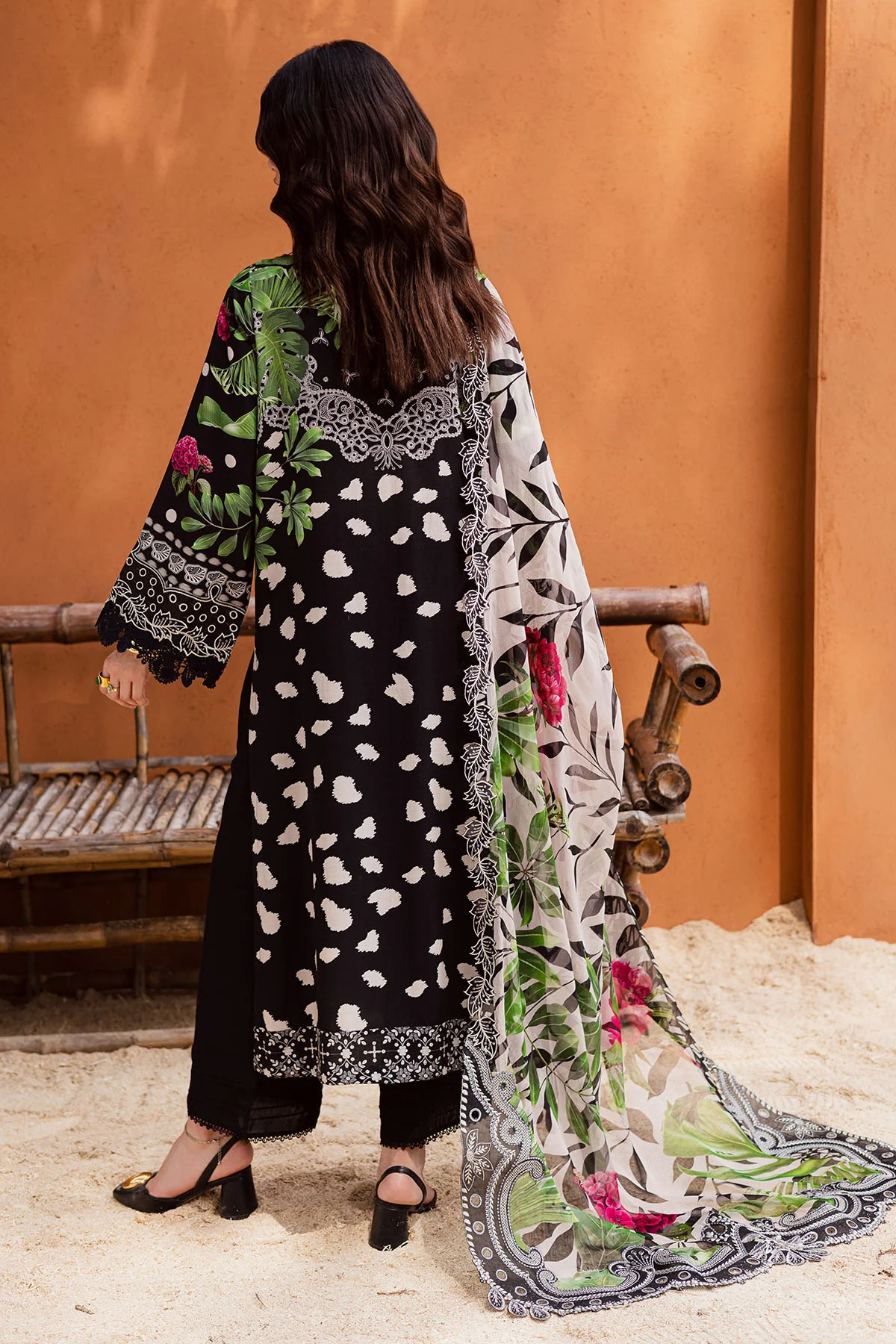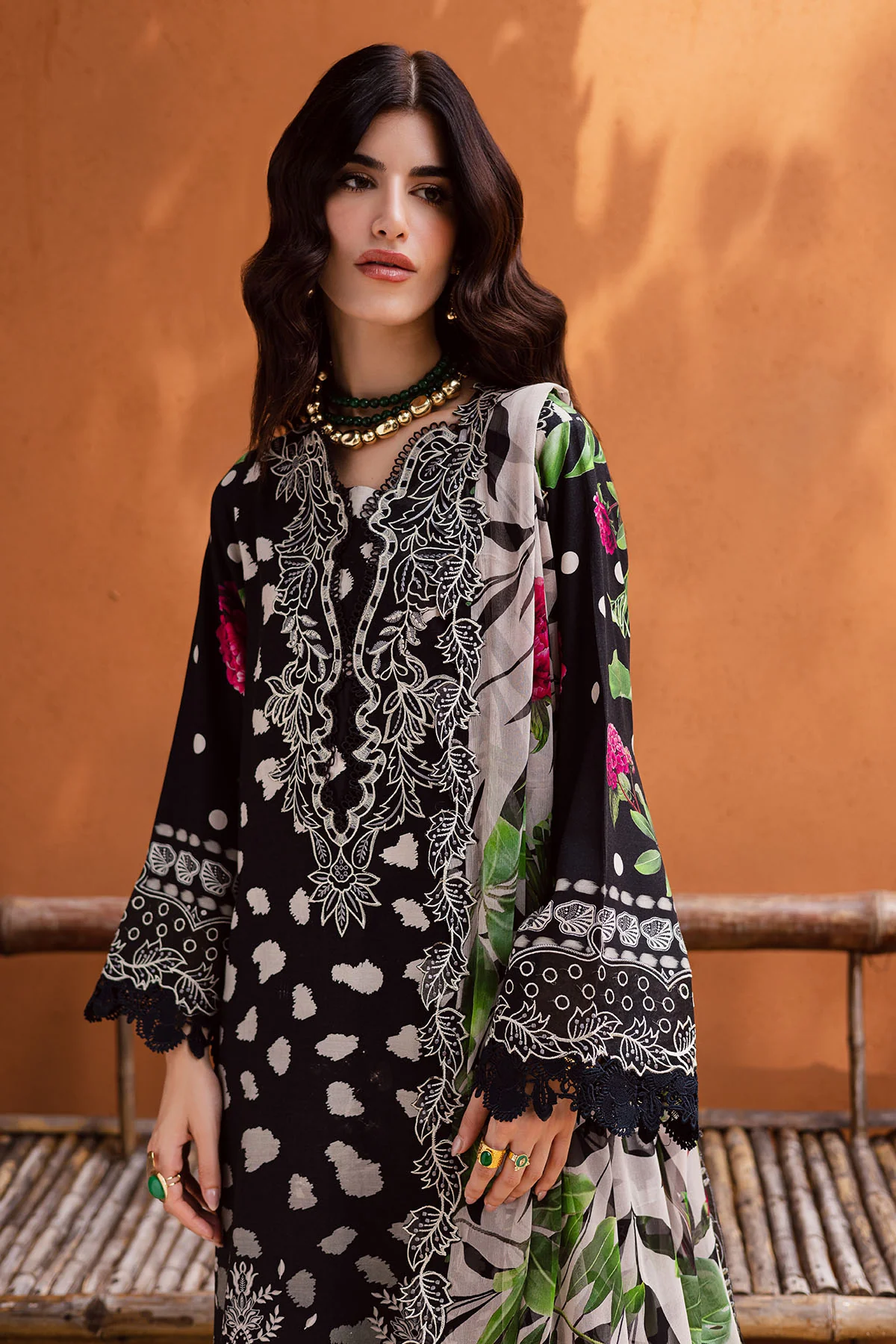 Sophisticated Black Embroidered Lawn Suit with Digital Prints and Chiffon Dupatta
