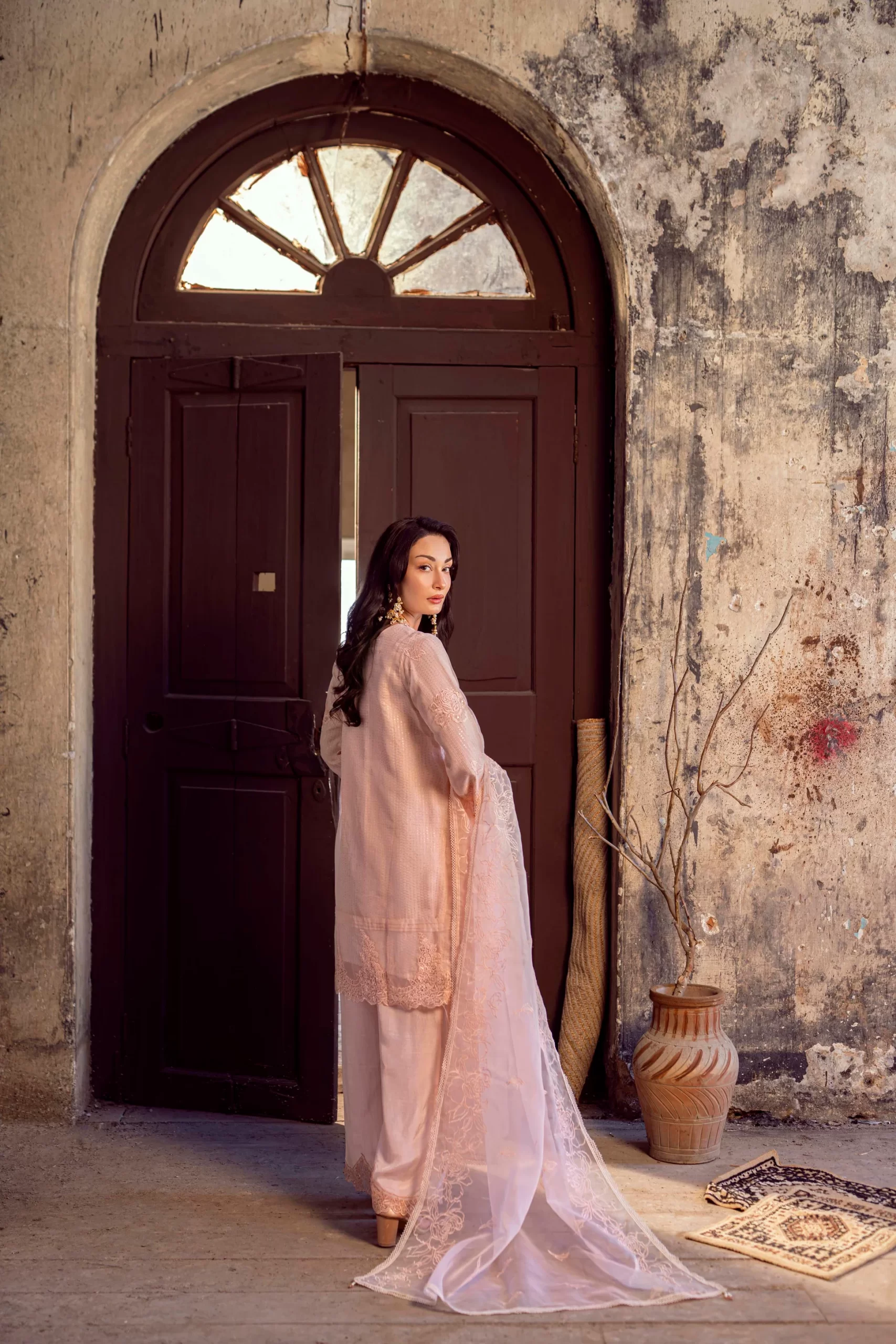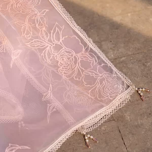 Dupatta: A graceful organza dupatta, adorned with elegant embroidery and finished with 4-side lace detailing.