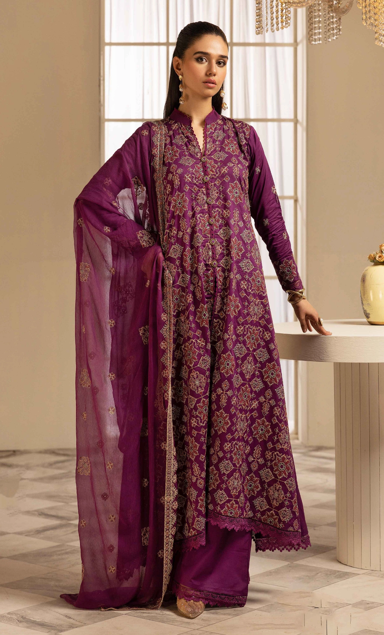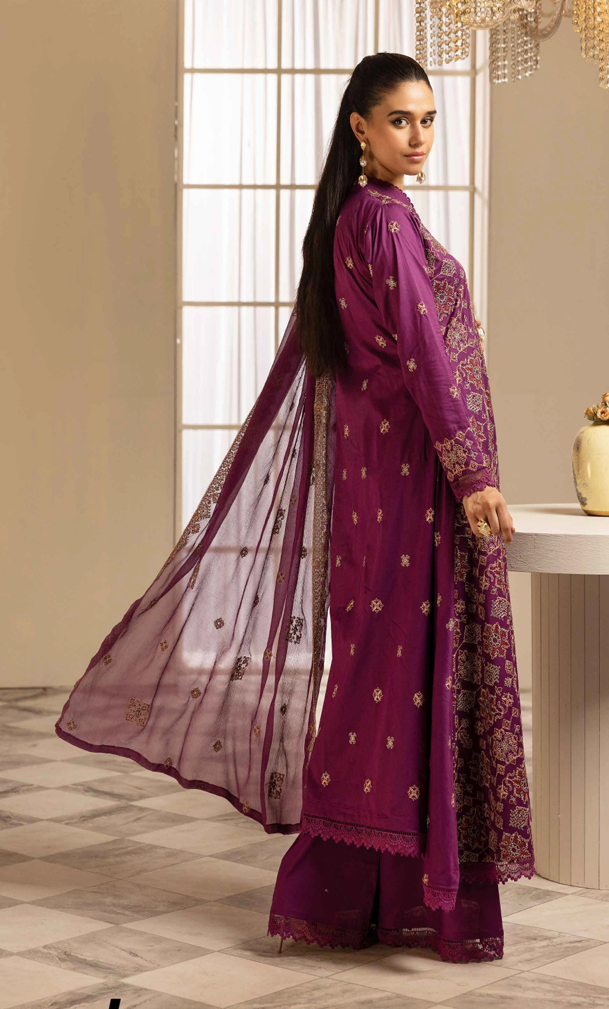 KHOOBSURAT 3-Pc Unstitched Luxurious-Embroidered Lawn with Pure Embroidered Bamberg Chiffon Dupatta