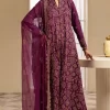 Royal Purple Embroidered Cotton Suit with Floral Silk Dupatta