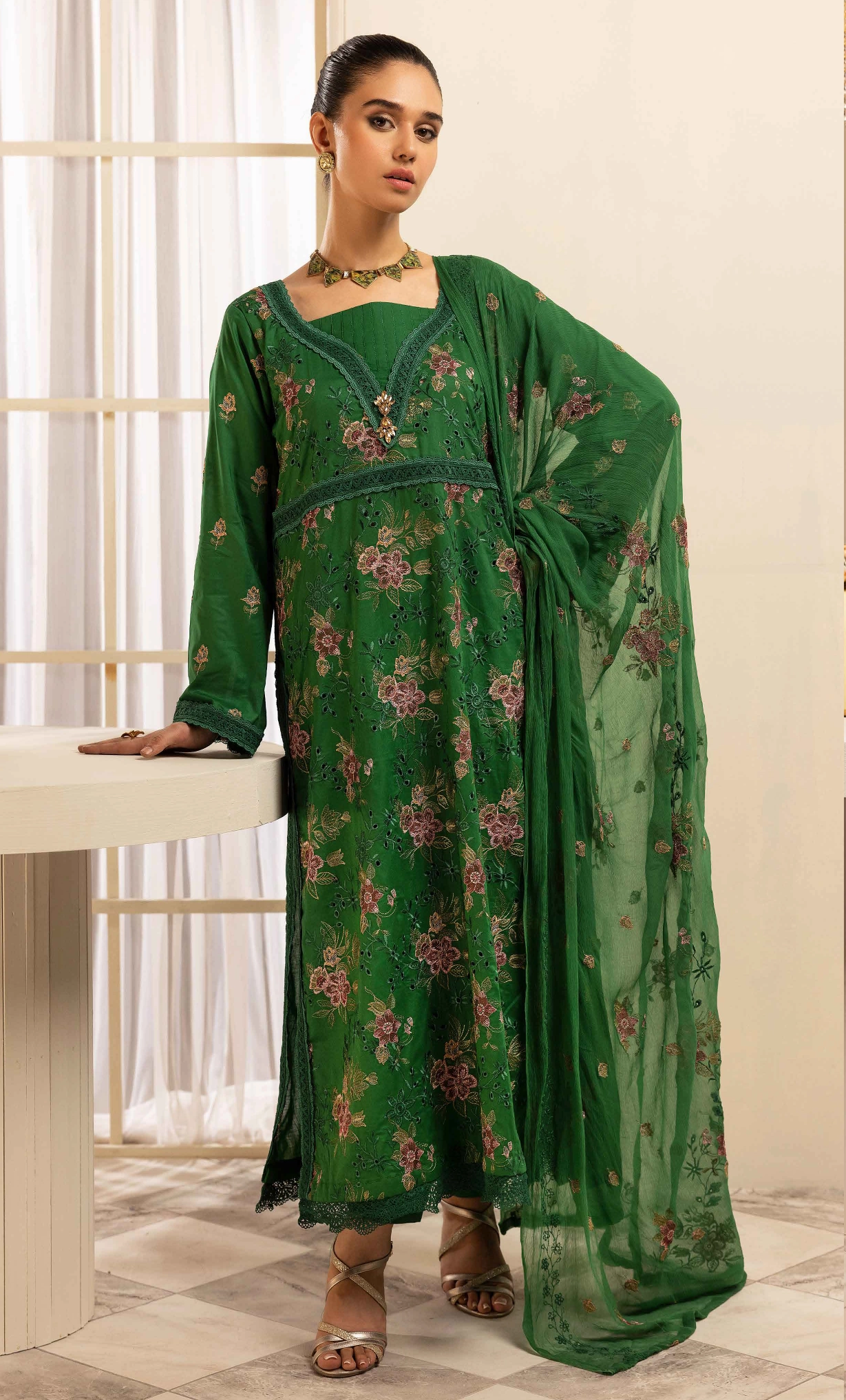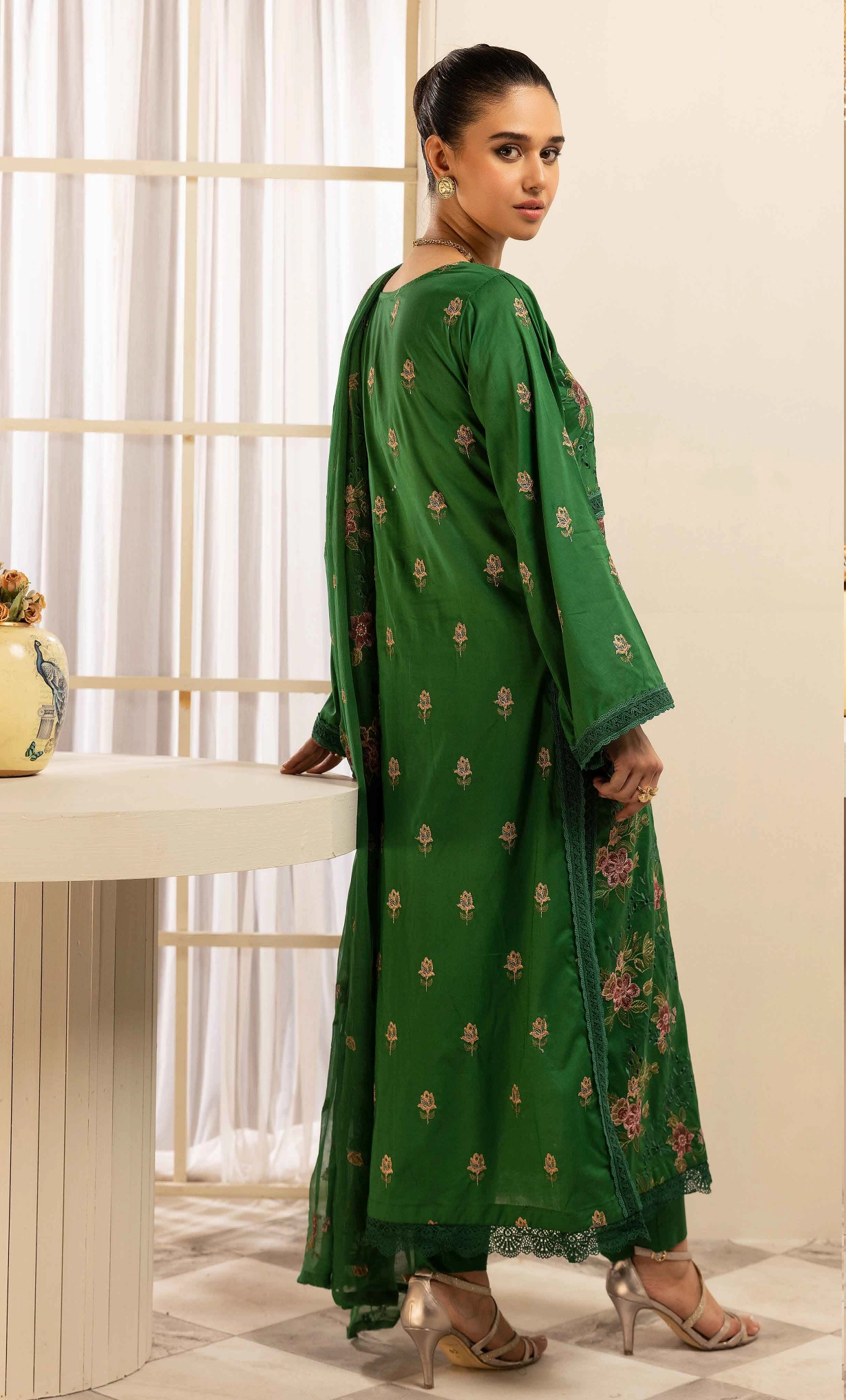 KHOOBSURAT 3-Pc Unstitched Luxurious-Embroidered Lawn with Pure Embroidered Bamberg Chiffon Dupatta