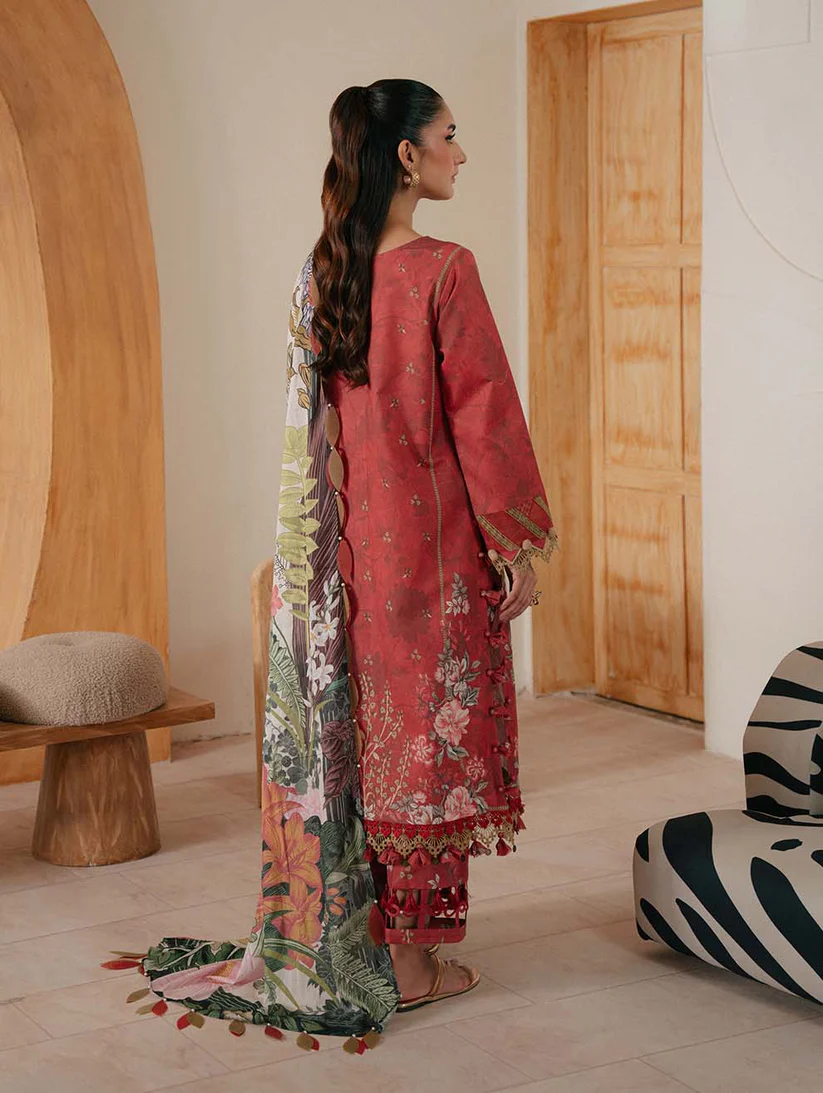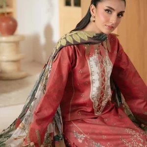 Luxurious Mulberry Red Embroidered Lawn Suit with Chiffon Dupatta