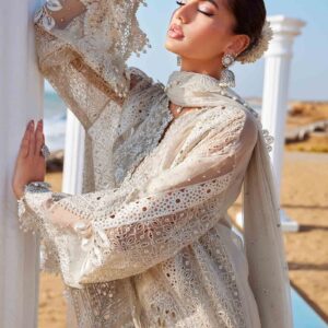 Turn every moment into a graceful affair with this Luxurious Ivory 3-Piece Unstitched Embroidered Organza Suit, a masterpiece of craftsmanship and elegance. Featuring intricate embroidery, shimmering pearls, diamantes, and 3D florals, this ensemble is designed for festive soirées, wedding events, and timeless glamour.