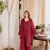 Luxurious Mulberry Red Embroidered Lawn Suit with Chiffon Dupatta