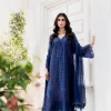 Elegant Navy Blue Embroidered Lawn Suit with Printed Chiffon Dupatta