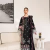 Striking Black Embroidered Cotton Ensemble with Silk Dupatta