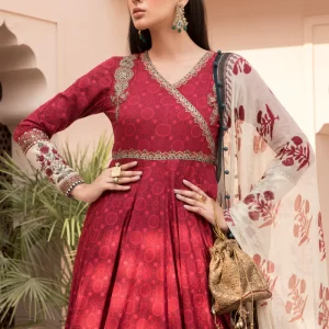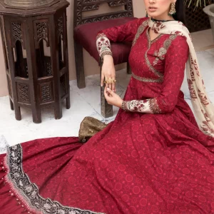 Maria. B 3 Piece Unstitched Printed Embroidered Lawn Suit | EL-21-03-Maroon