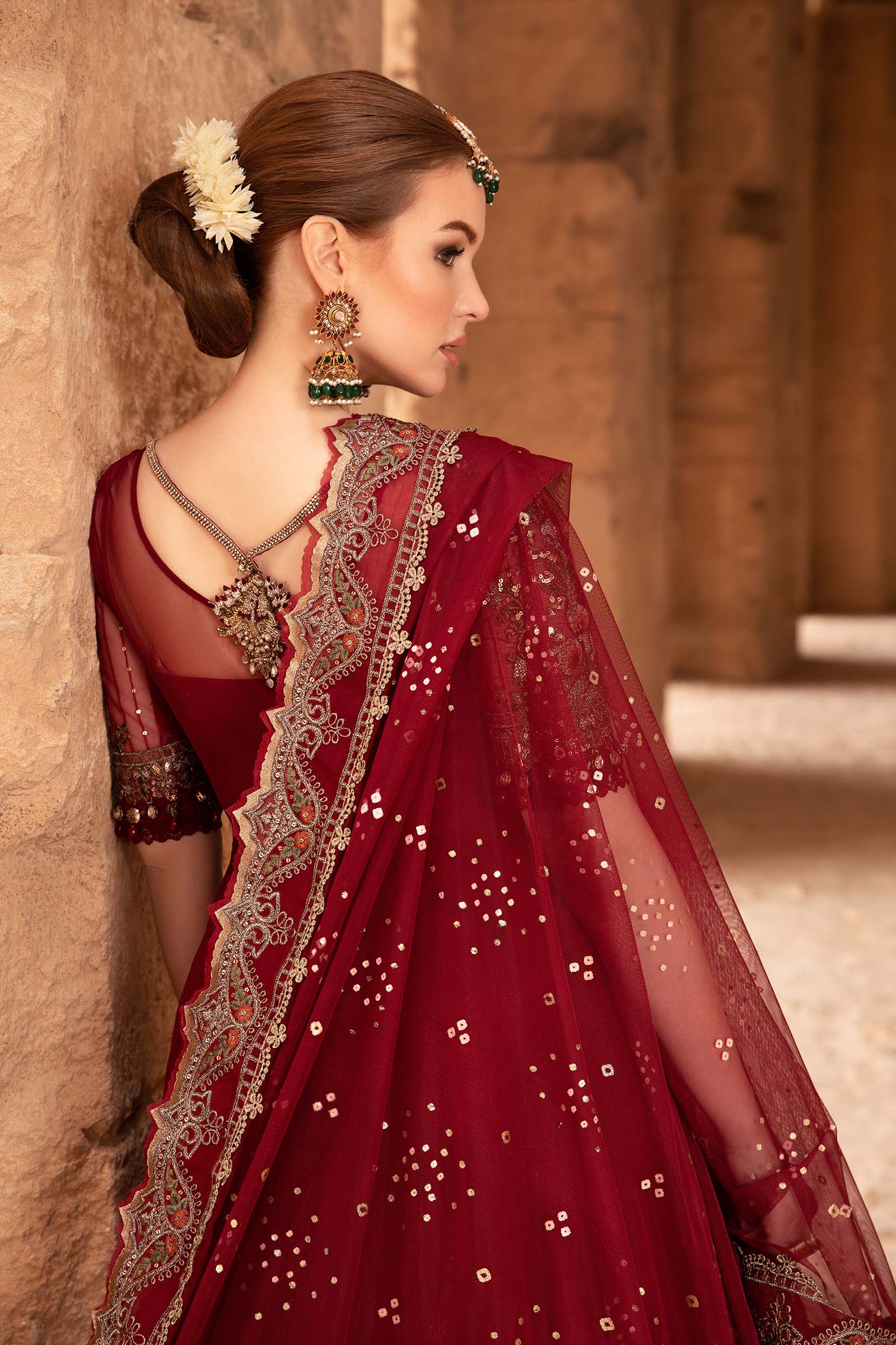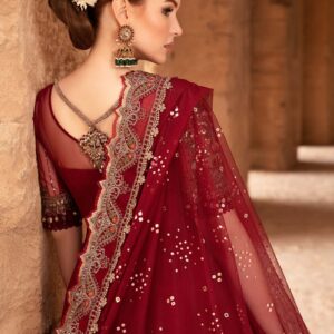 Luxurious Mulberry Red Embroidered Lawn Suit with Chiffon Dupatta