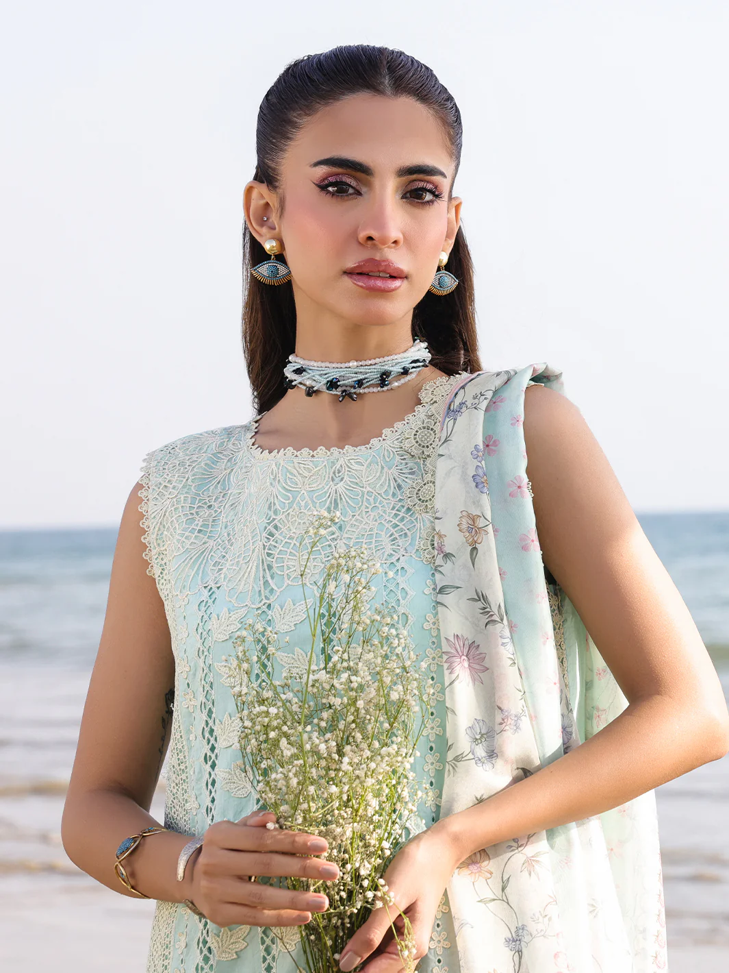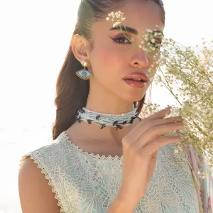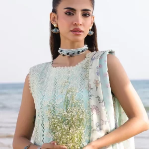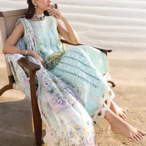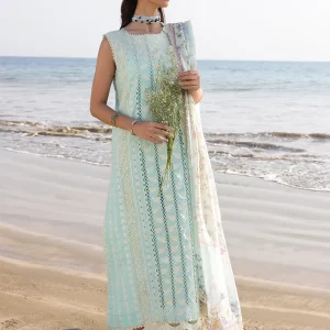Serene Cerulean Blue Embroidered Lawn Suit with Chiffon Dupatta