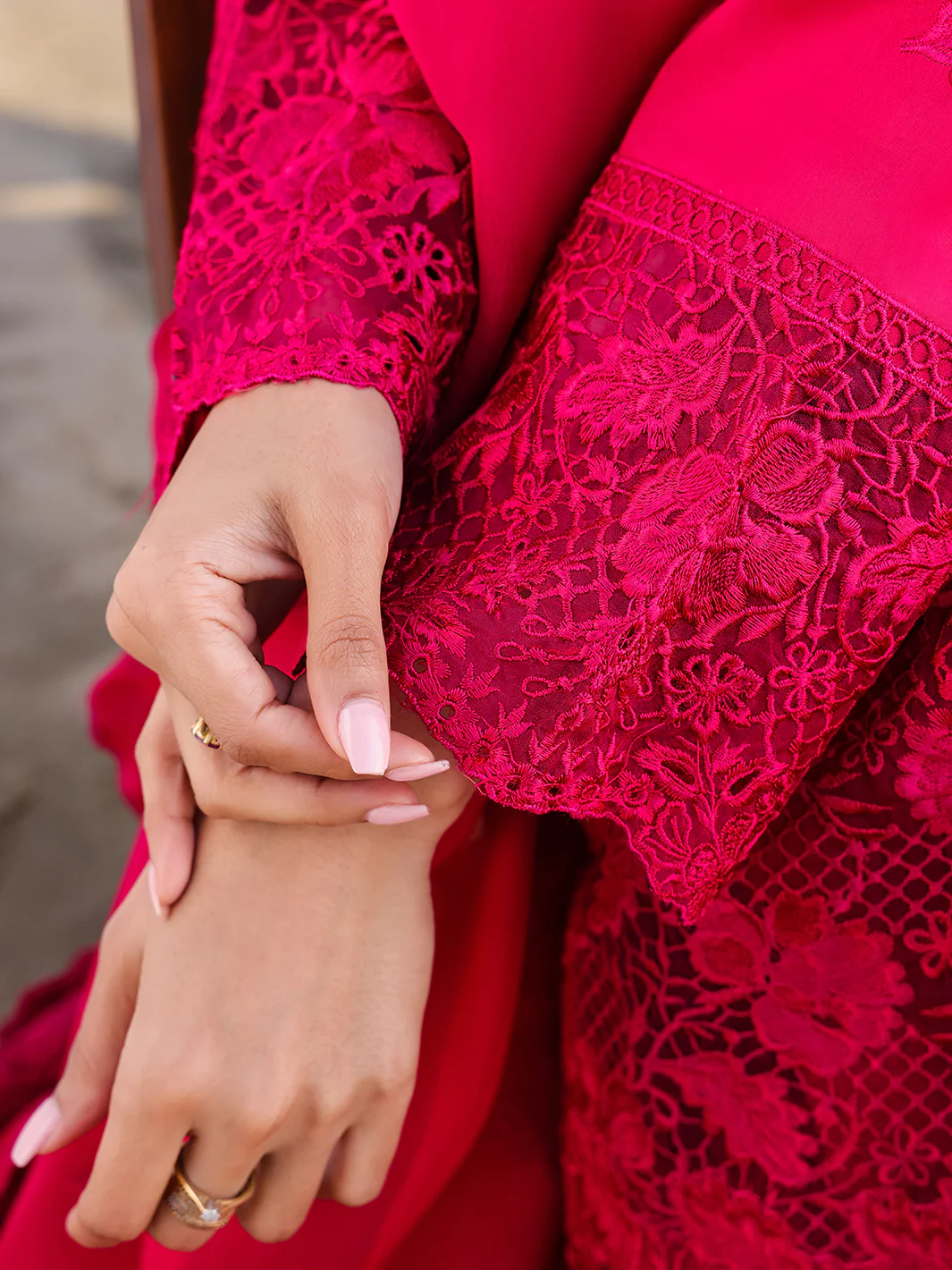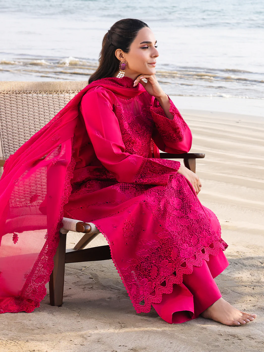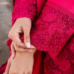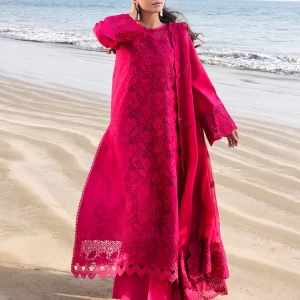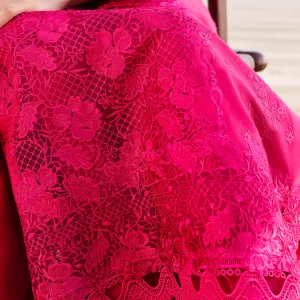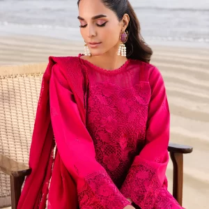 Luxurious Mulberry Red Embroidered Lawn Suit with Chiffon Dupatta