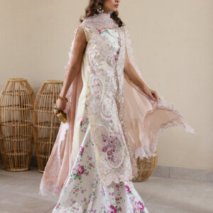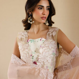 Elegant Beige Printed Lawn Suit with Pink Ombré Chiffon Dupatta