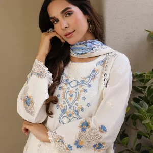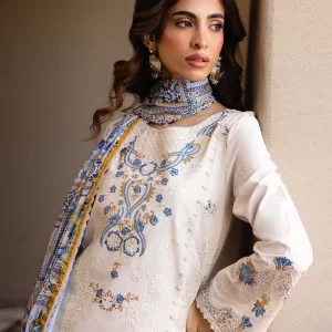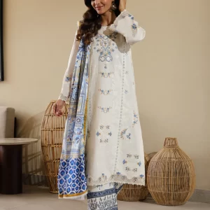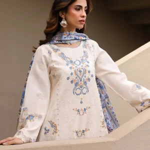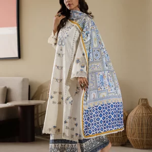 Tranquil Aqua Marine Printed Lawn Suit with Embroidered Details and Chiffon Dupatta