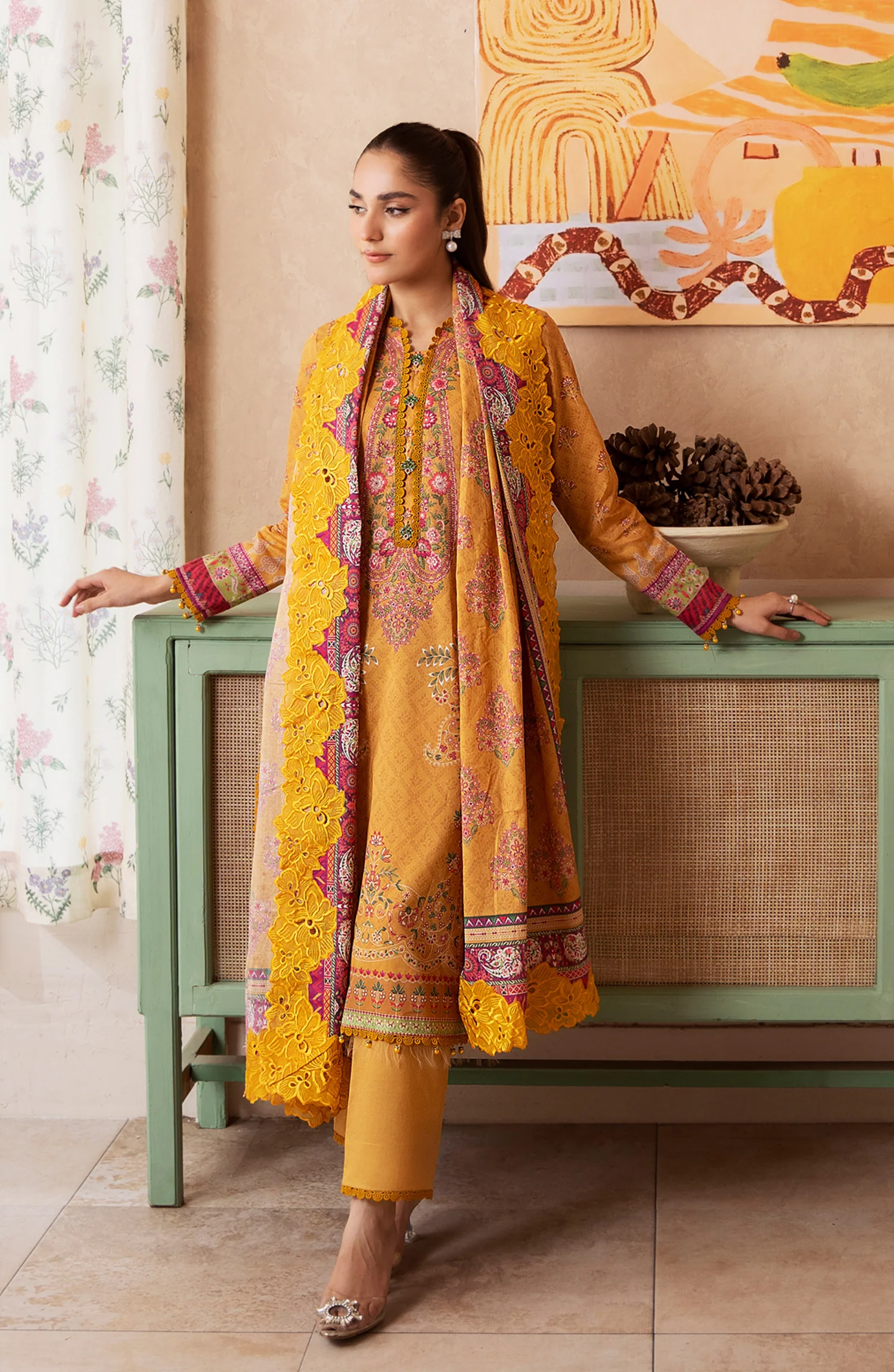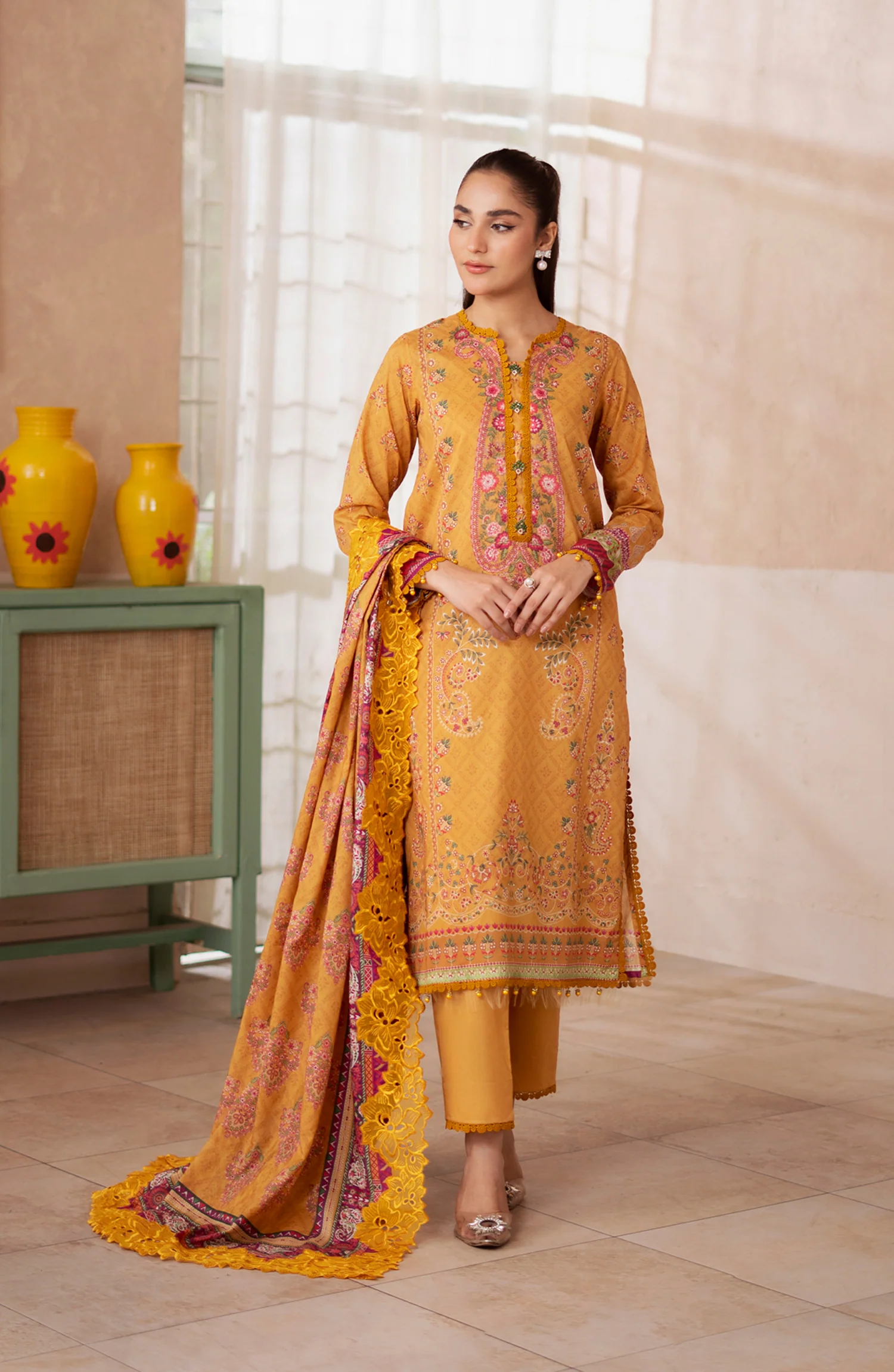 Mausummery Digital Printed Lawn Unstitched 3 Piece Suit – Amber – MU25USS4 – Mustard – Summer Collection