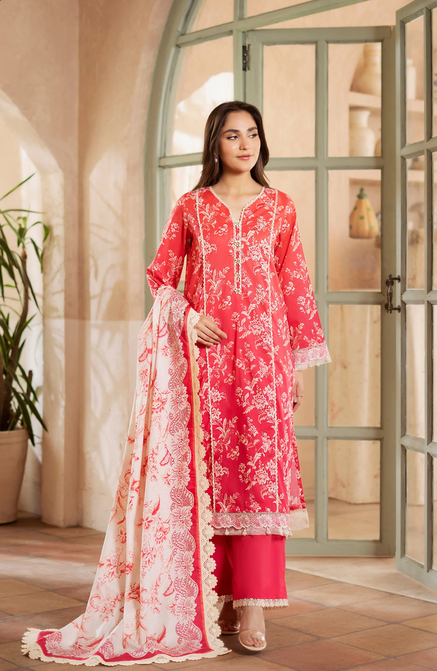 Mausummery Digital Printed Lawn Unstitched 3 Piece Suit – Coral – MU25USS4 – Red – Summer Collection