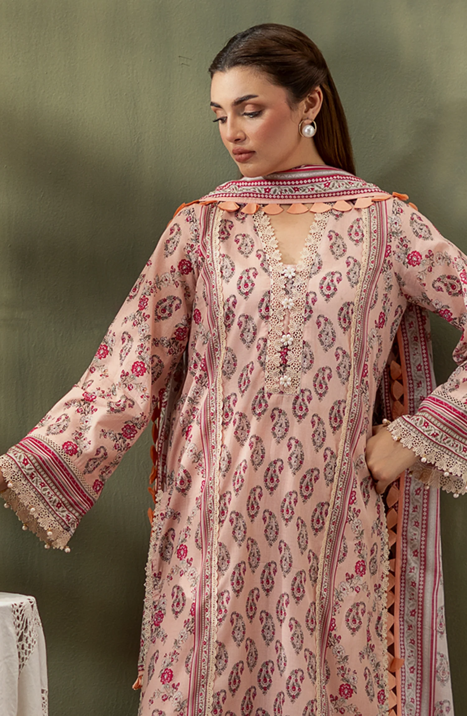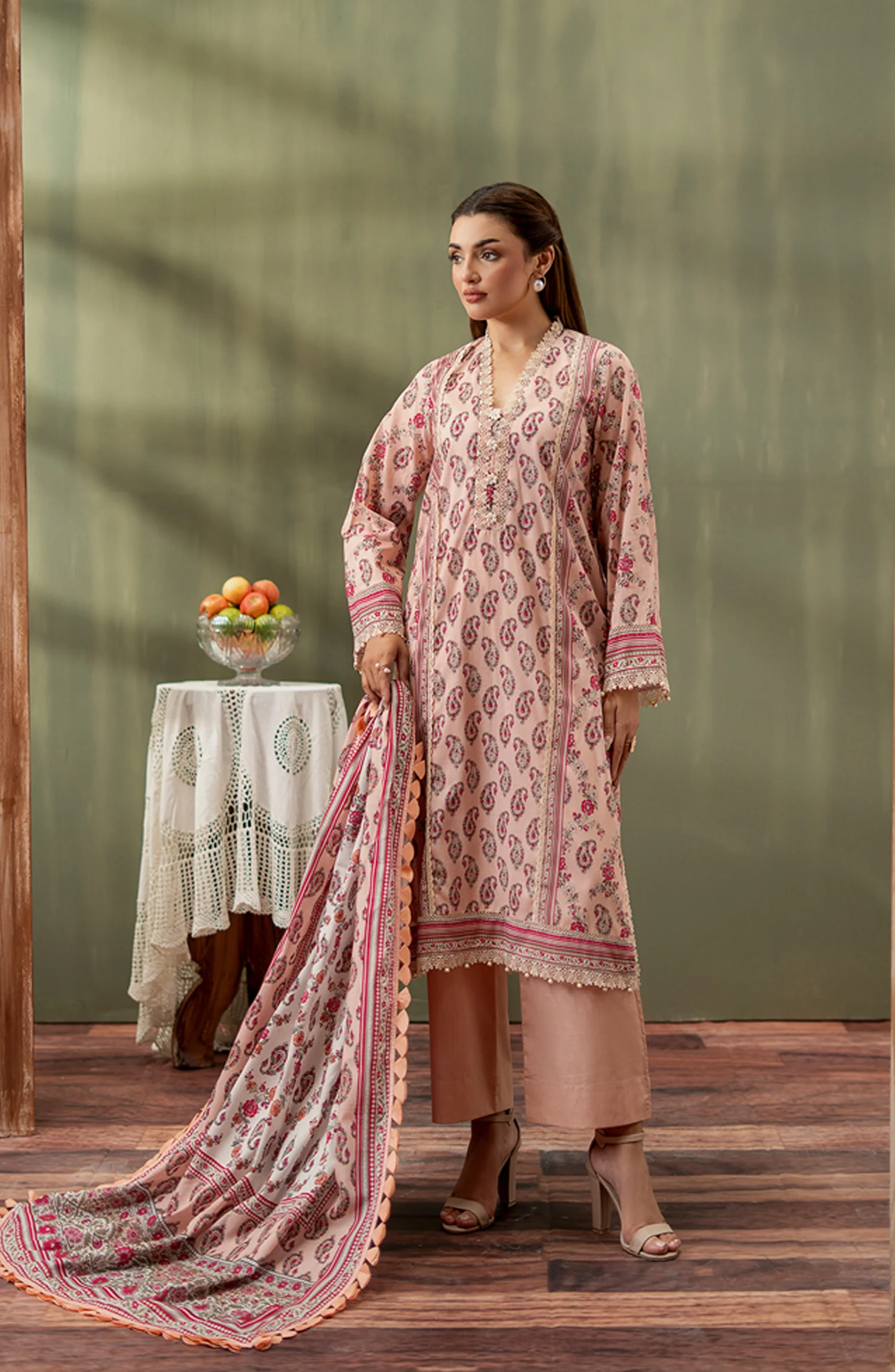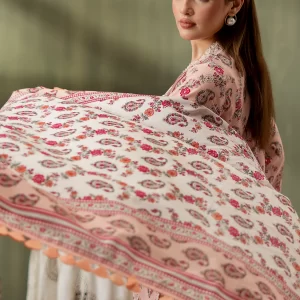 Delicate Light Pink Embroidered Cotton Suit with Floral Silk Dupatta
