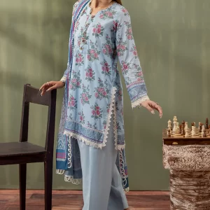 Tranquil Aqua Marine Printed Lawn Suit with Embroidered Details and Chiffon Dupatta