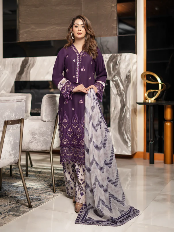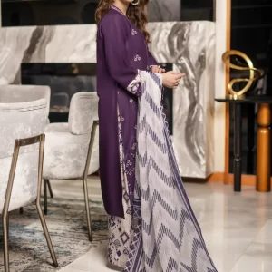 Royal Purple Embroidered Cotton Suit with Floral Silk Dupatta