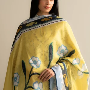 Joyful Mustard Yellow Printed Lawn Suit with Embroidered Details and Chiffon Dupatta