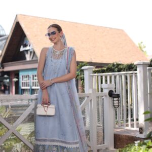 Serene Cerulean Blue Embroidered Lawn Suit with Chiffon Dupatta