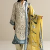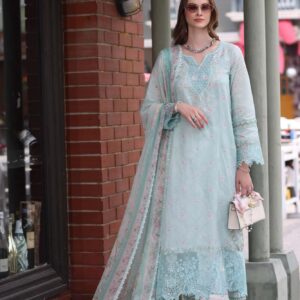 Tranquil Aqua Marine Printed Lawn Suit with Embroidered Details and Chiffon Dupatta