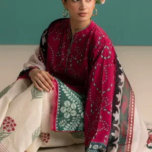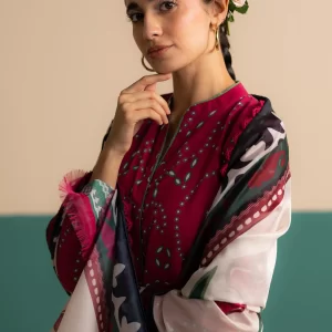 Luxurious Mulberry Red Embroidered Lawn Suit with Chiffon Dupatta