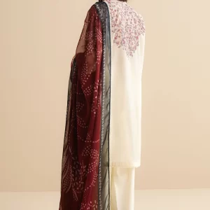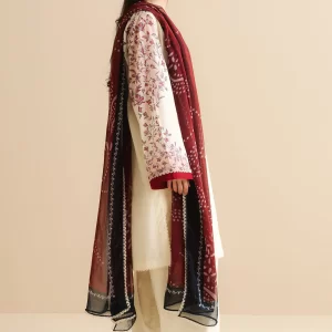 Luxurious Mulberry Red Embroidered Lawn Suit with Chiffon Dupatta