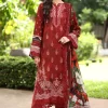 Striking Red Embroidered Cotton Suit with Printed Silk Dupatta