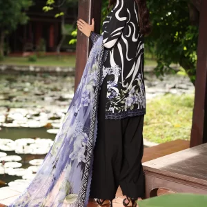 Elegant Navy Blue Embroidered Lawn Suit with Printed Chiffon Dupatta