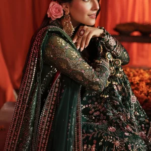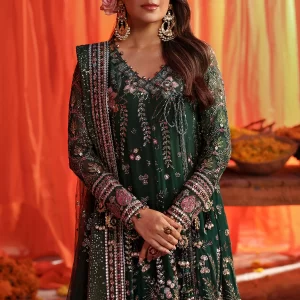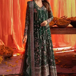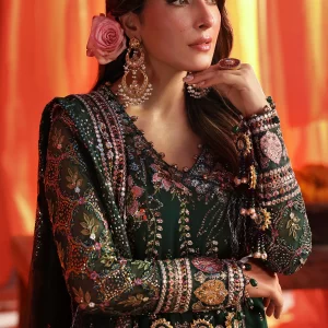 Nureh Jhoomro Luxury Embroidered Chiffon Unstitched 3 Piece Suit – NL-83 Zoha – Green – Formals Collection