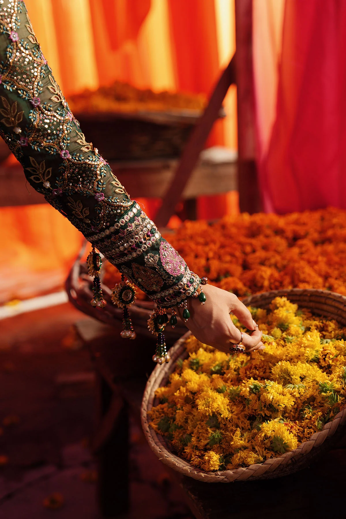 - Embroidered And Hand Embellished Chiffon Sleeves