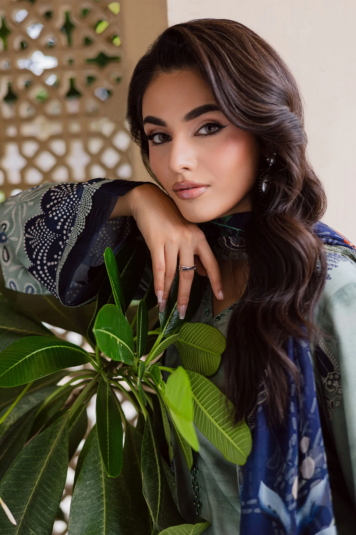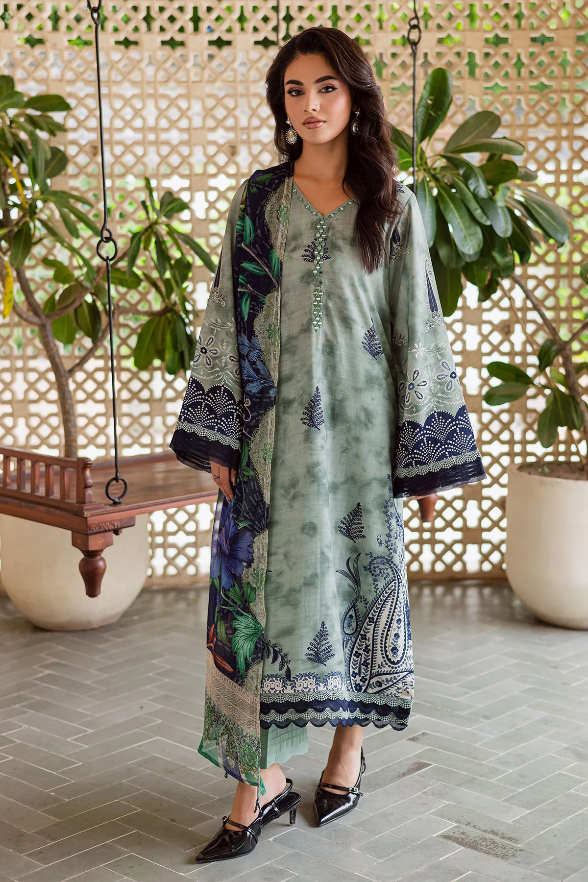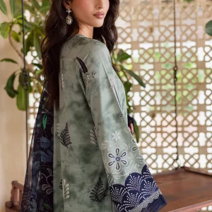 Light Green Embroidered Cotton Suit with Geometric Silk Dupatta