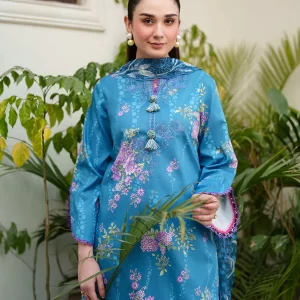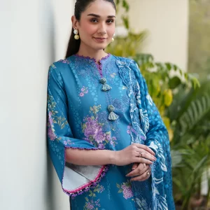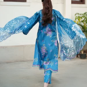Serene Cerulean Blue Embroidered Lawn Suit with Chiffon Dupatta