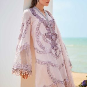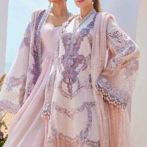 Powder Pink Embroidered Jacquard Lawn Suit with 3D Flowers and Chantelle Dupatta