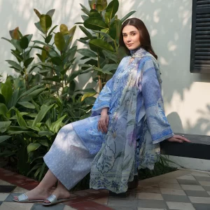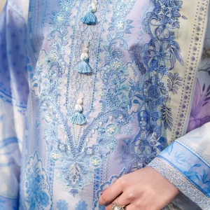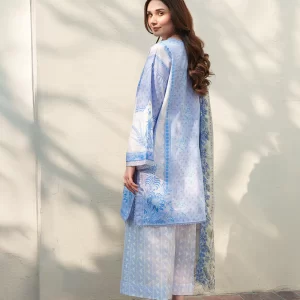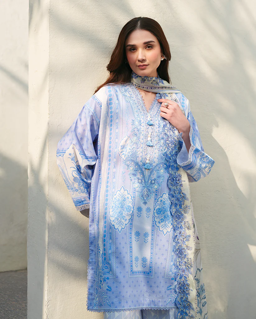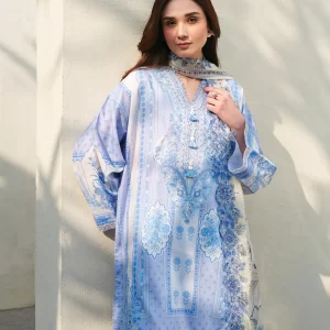 Serene Cerulean Blue Embroidered Lawn Suit with Chiffon Dupatta